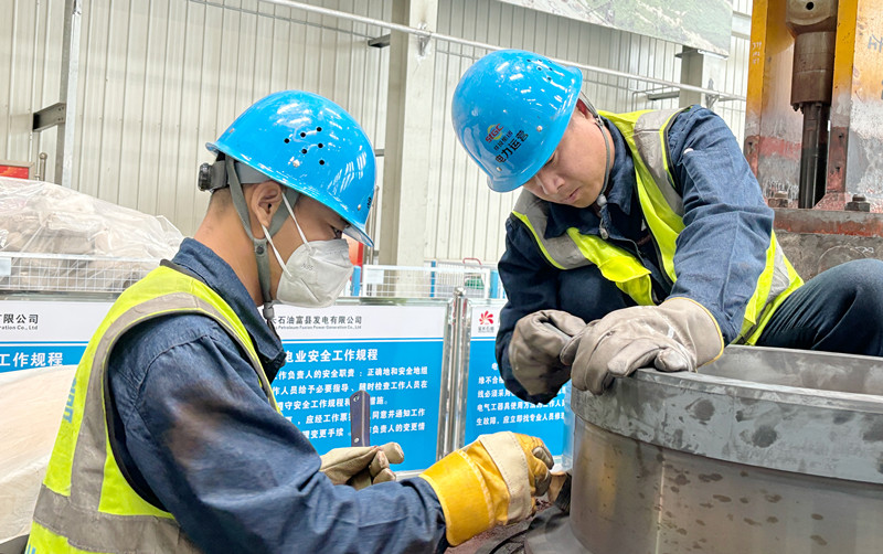 “我們再重新調(diào)整,確認各軸瓦處頂起高度是不是合適。頂軸油壓降低會影響盤車運行,汽輪機也無法沖轉(zhuǎn)。雖然離交工只有2天了,但與工期相比,檢修質(zhì)量更是重點?!彪娏\營麟北項目部汽機主管工程師范智杰說。