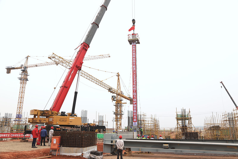 2024年12月9日9時(shí)16分,伴隨著機(jī)器陣陣轟鳴聲,陜投信豐能源2×1000MW機(jī)組工程1號(hào)機(jī)組鍋爐首根鋼結(jié)構(gòu)立柱順利開吊。