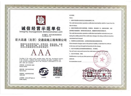 誠信經(jīng)營示范單位